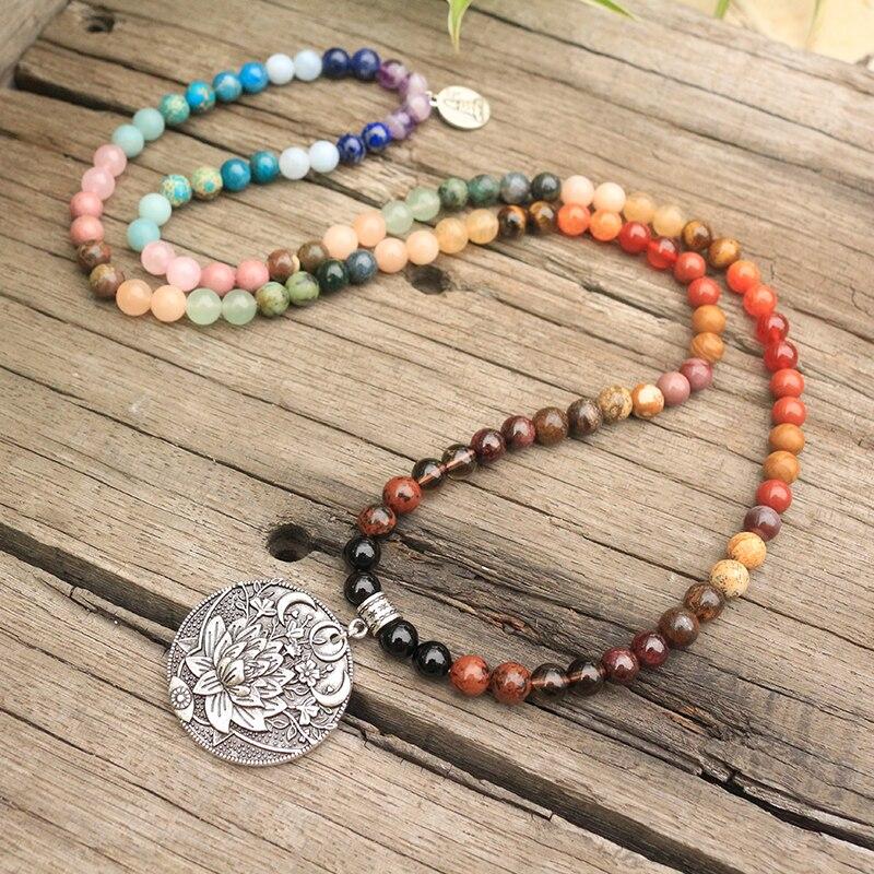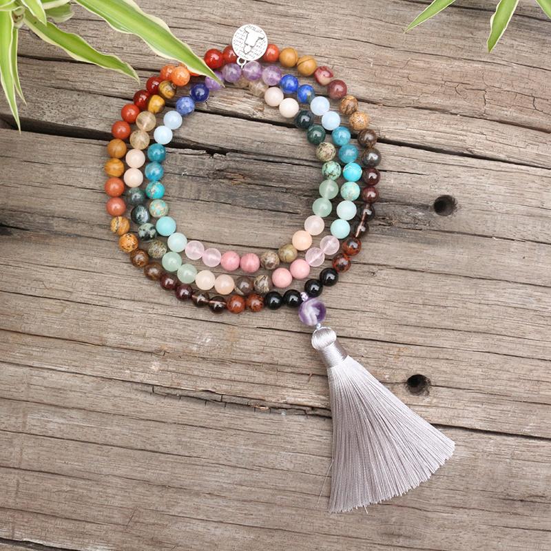 The 7 Chakra Gemstone Mala Bead bracelet is wonderful for those looking to work on their chakras and spirituality and add charm to their look.