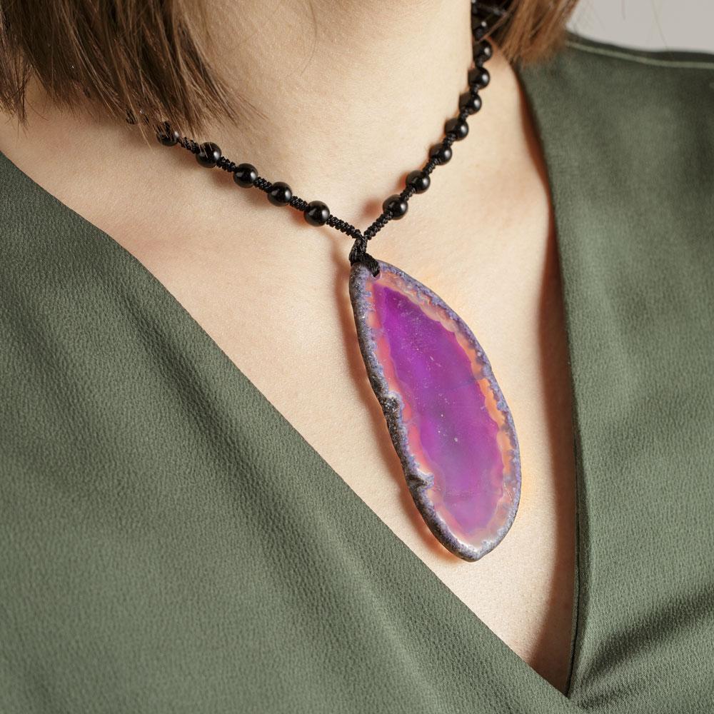 This agate stone pendant will help to let go of anger, expand the love in the heart, and gather the courage to make a new beginning.