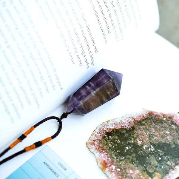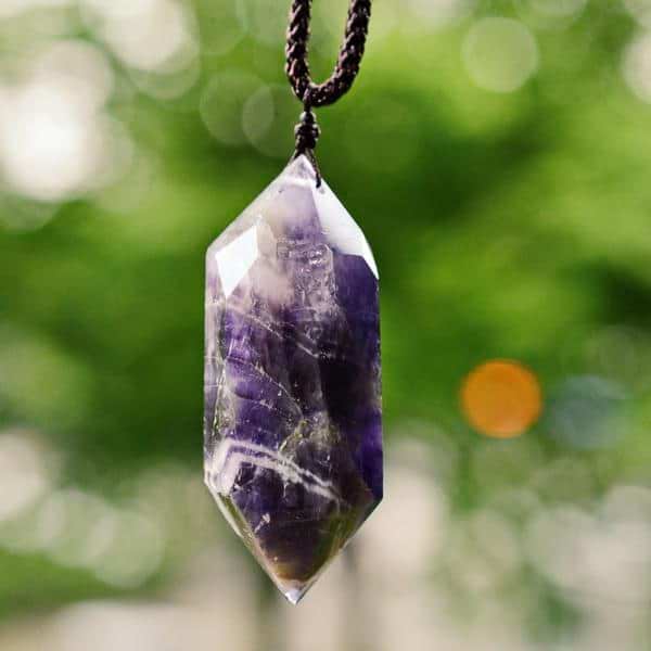 Pendulum Amethyst Necklace's magic powers include strength, calming, peace, healing, banishing, love, and dreaming. Tune into the energy of amethyst for a spiritually healthy mind!