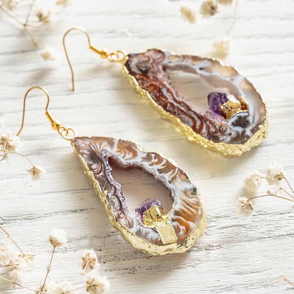 Each pair, as the gemstone itself, is unique and one of a kind. Your Amethyst Dangle Earrings will arrive especially for you and there will be no other wearing the same shade of color or shape.