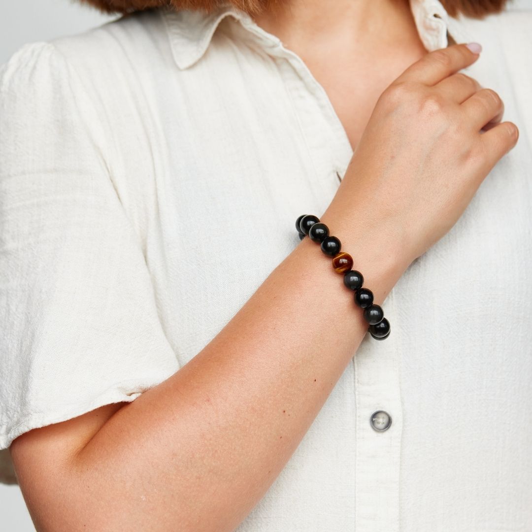 They are fuelled with vibrations of desire, making it easier to visualize those that arise within you. Wearing Tiger Eye & Black Onyx beads will bring the crystal's energy field into your own.