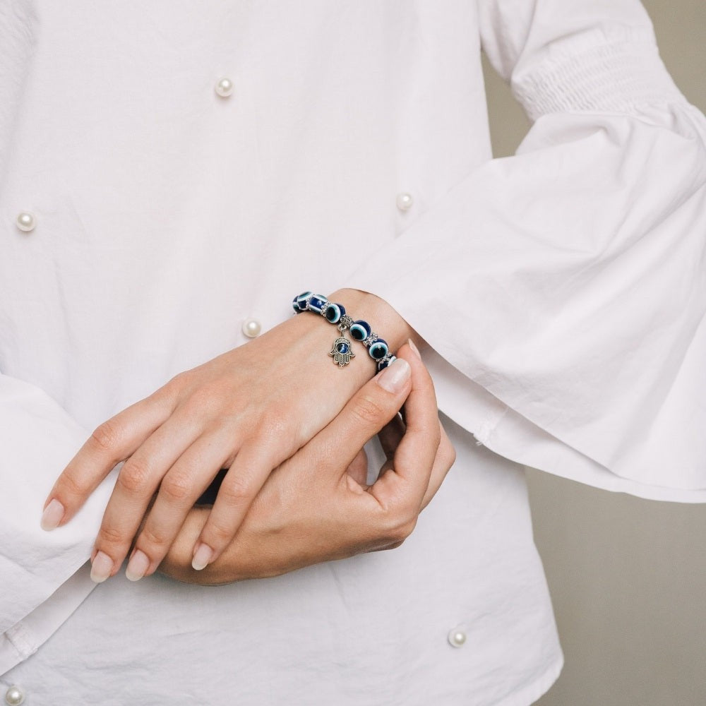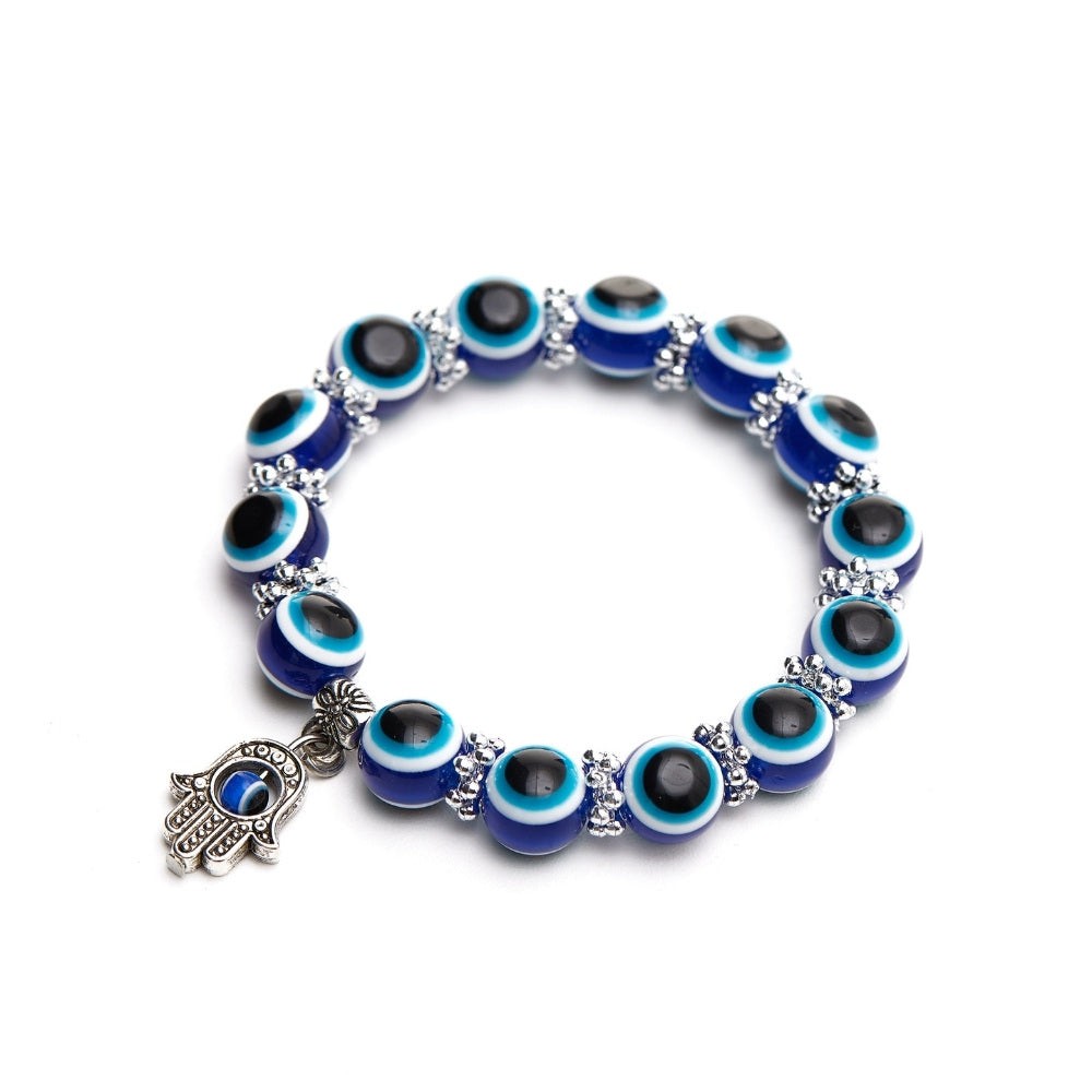 The palm-shaped amulet is highly popular in the Middle East. Throughout history, the open hand is recognized as a sign of protection from the forces of evil. Today, by wearing the Blue Hamsa Hand Evil Eye Bracelet, you can rest knowing your path to happiness will be safe and protected by the Hamsa Hand.