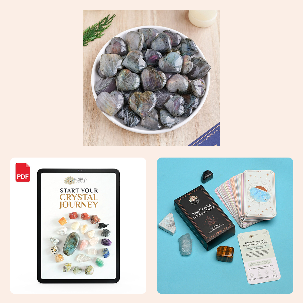 Bundle - Labradorite Heart Stone - The Crystal Wisdom Card Deck - Mindful Crystal Guide eBook