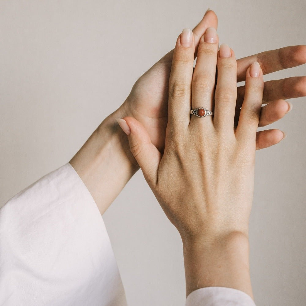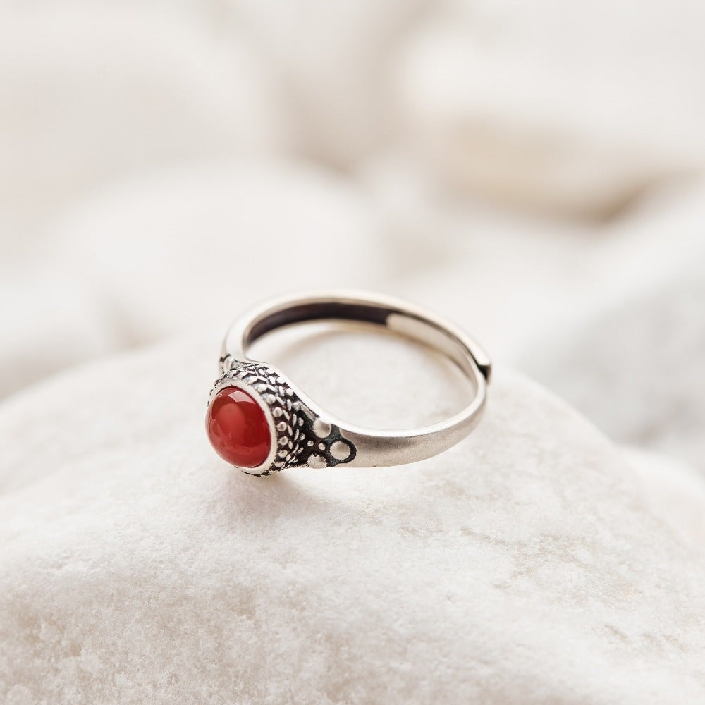 Compliments and beautiful style? Yes indeed. But with our Cherry Crimson Carnelian Ring, you will also bring excitement and high energy anywhere you go!