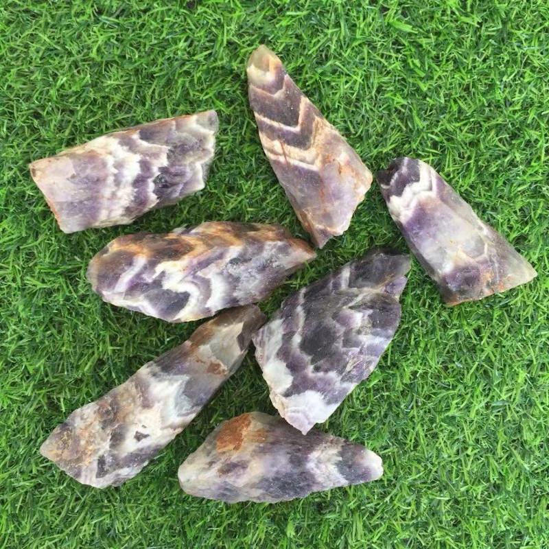 Chevron Amethyst is sometimes called Banded Amethyst. It has all the healing properties of Amethyst and also a few additional qualities: Banded Amethyst is excellent for working with the third eye and stimulating the third eye chakra. It can enhance intuition and is a powerful stone for dissipating and repelling negativity. It has a cleansing effect on the aura.