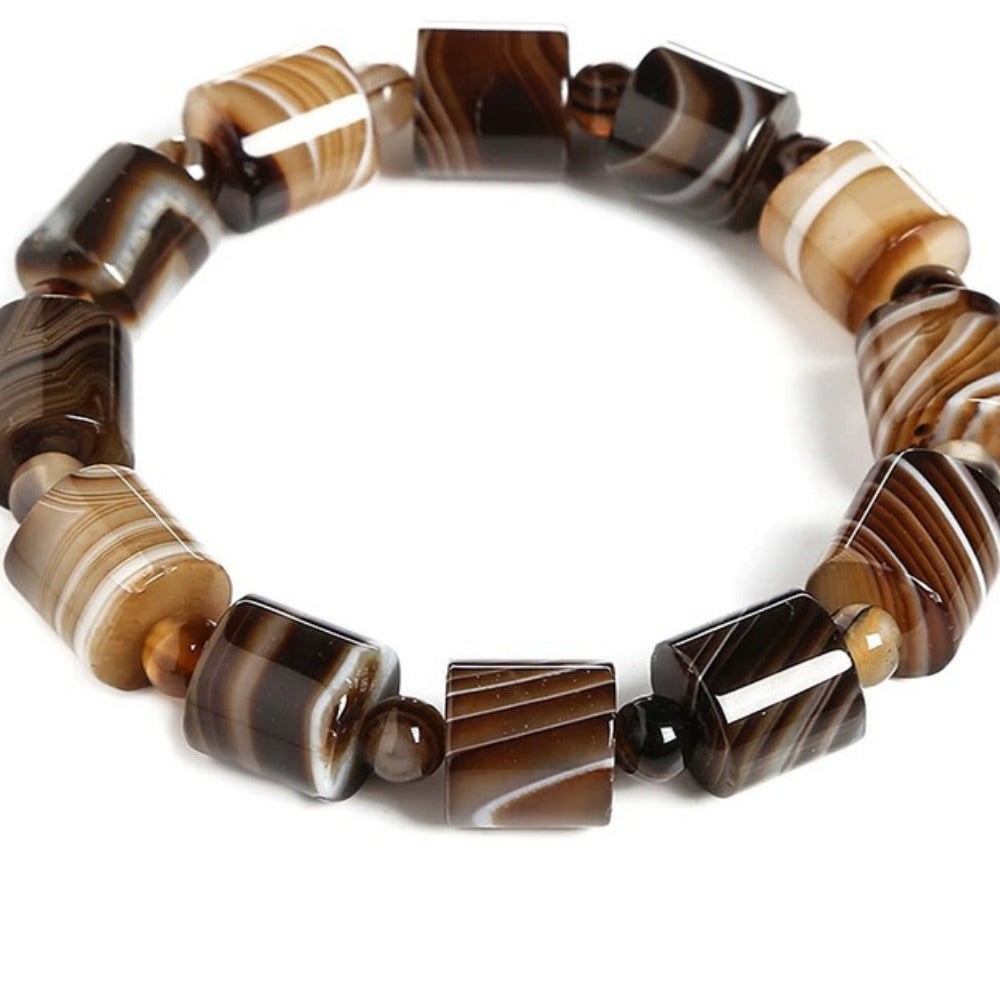 Striped masterfully by nature and polished carefully by artisans, this Coffee Brown Agate Bracelet has a look that stands out for its coffee hues and lovely patterns.