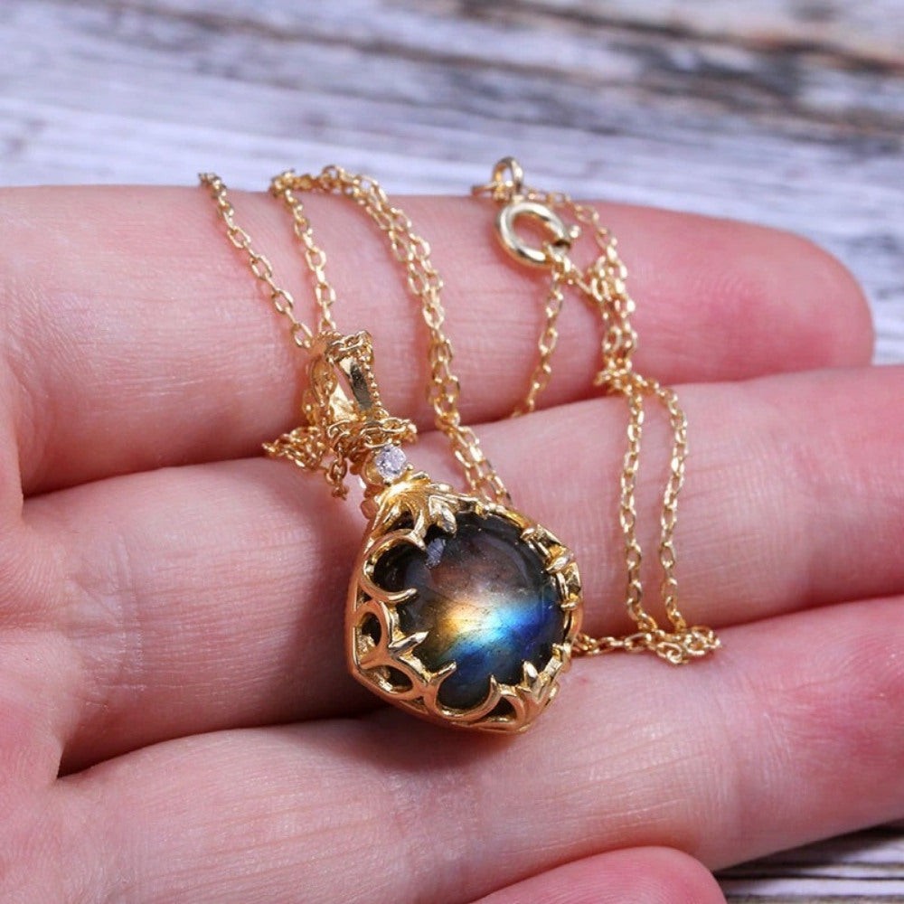 Wearing this Labradorite crystal necklace will enhance psychic abilities, stimulate creativity and give you more passion to explore spirituality - making this labradorite stone necklace perfect for various activities such as meditation.