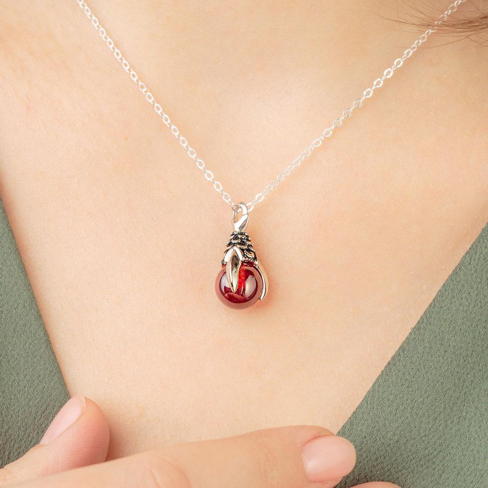 The Red Garnet stone necklace promotes spiritual growth and is the perfect aid to find emotional balance during hard times in your life. MS-GARNET