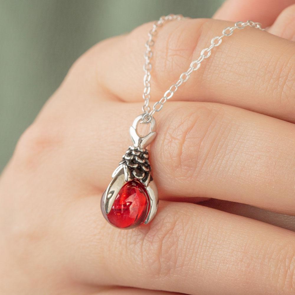 Carry this Dragon Claw Garnet Necklace that features a crystal first found thousands of years ago.