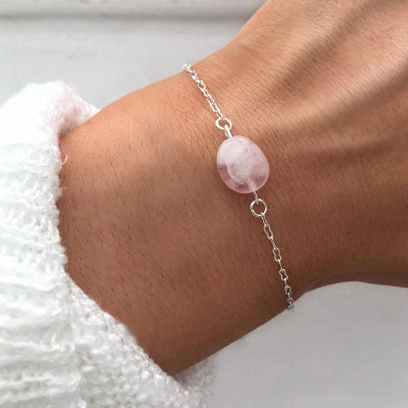 The Gracious Gem Bracelet is a true work of art featuring a dazzling and carefully selected amethyst or rose quartz gemstone.