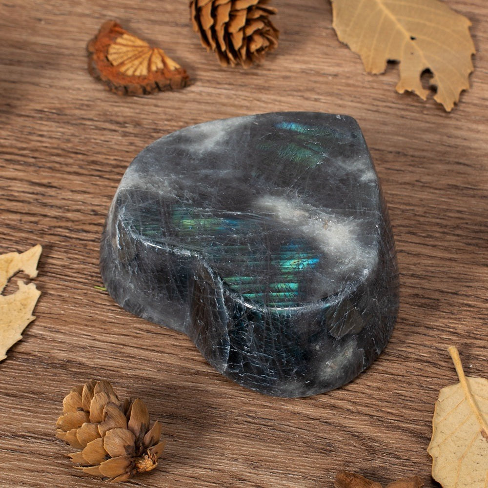 The Labradorite Heart Crystal Bowl emits pure energy from Mother Nature, allowing you to create the perfect atmosphere for all your spiritual rituals.