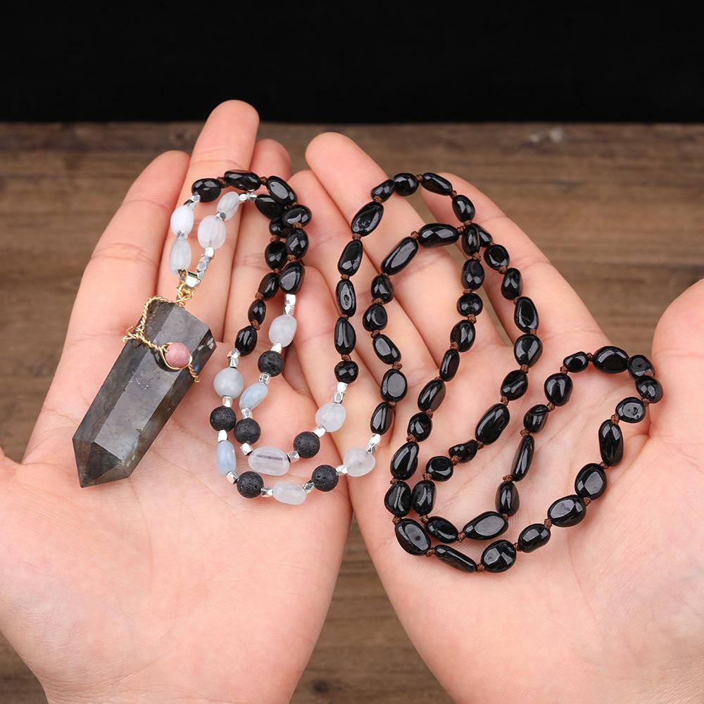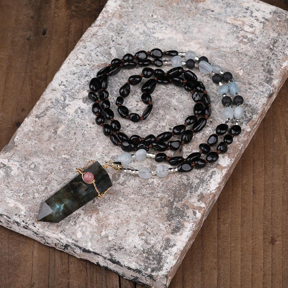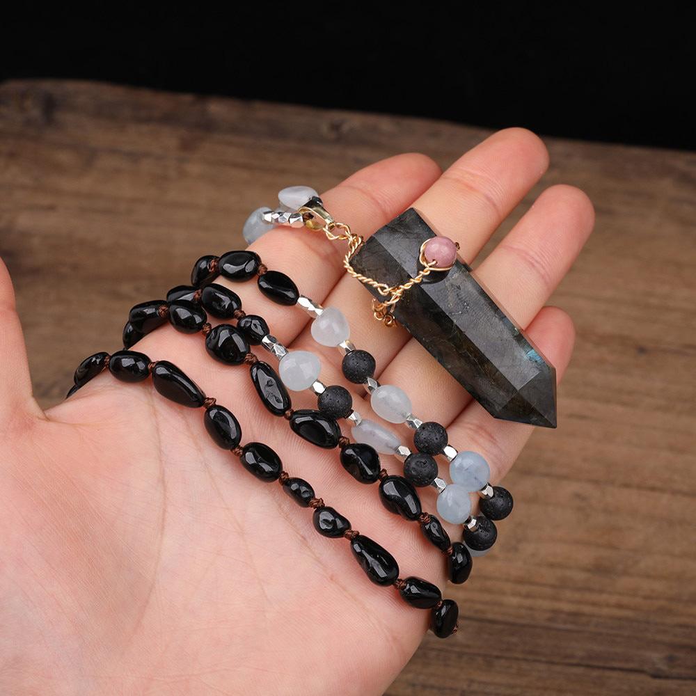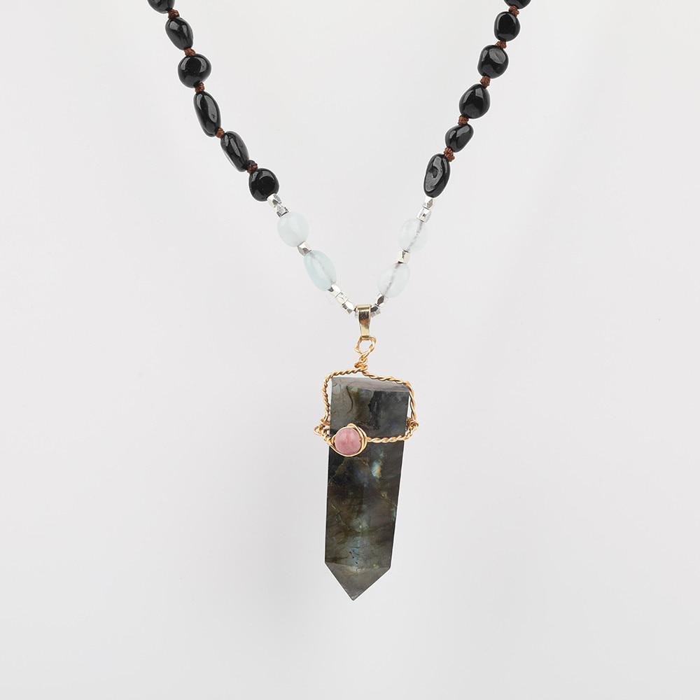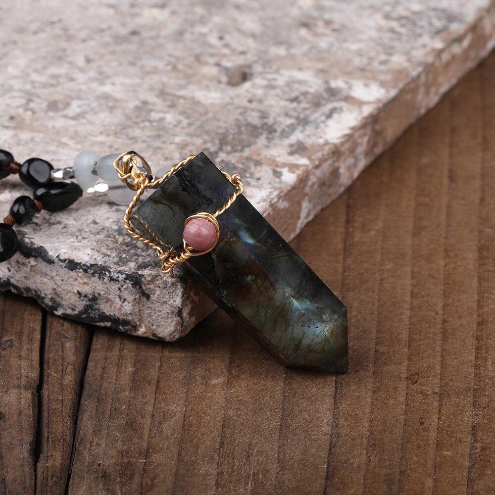 Who said jewelry has to be minimal? This labradorite point necklace combines a crystal point shape with gemstone beads to create a unique piece of labradorite jewelry.