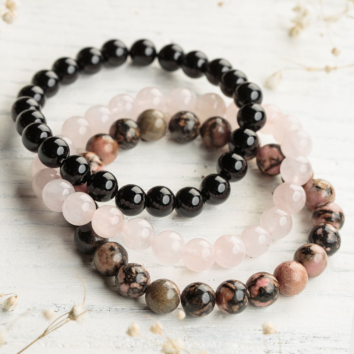 Each of the bracelets is suitable for every situation: for meditation, as a reminder of your intentions or simply to experience the energy of the gemstones.