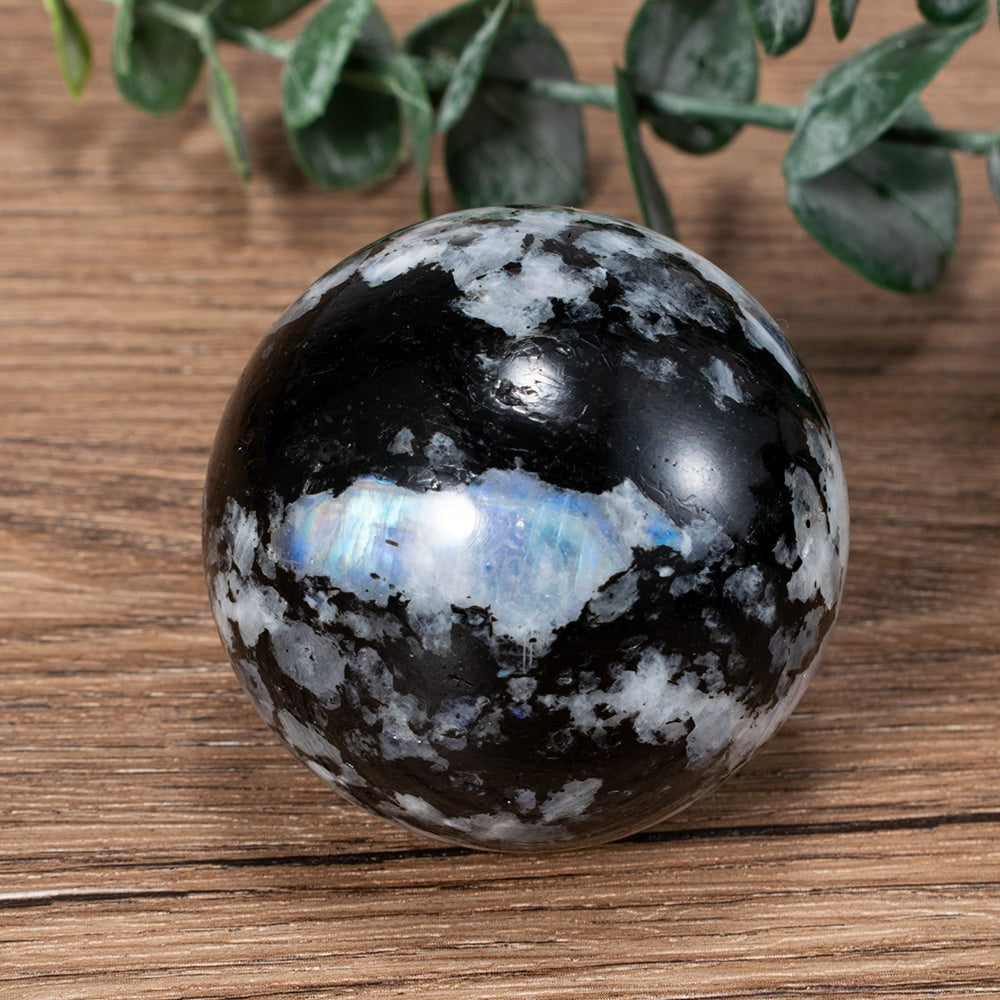 Immerse yourself in the ethereal dance of iridescent hues as the Moonstone Sphere reflects the gentle glow of ambient light. Each sphere is meticulously carved from genuine moonstone, a gemstone revered for its connection to the lunar energies and spiritual enlightenment.