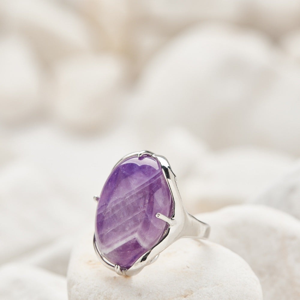 By being adjustable, this will fit on your preferred finger and provide great comfort. The natural Amethyst gemstone is also held by strong materials and is sturdy - so the beauty and the positive energy stay with you all the time!