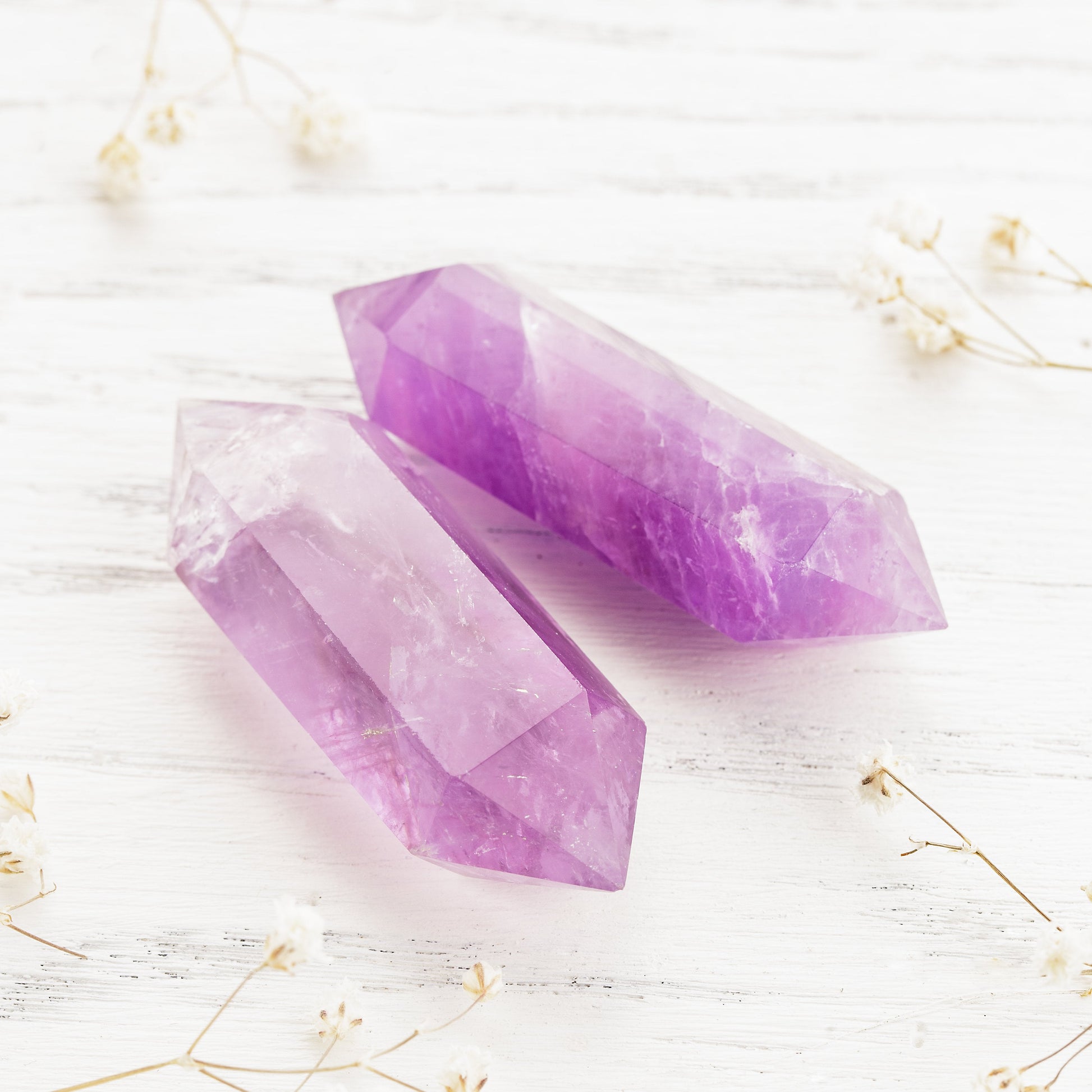 The Amethyst Double Terminated Point is an exquisite decorative piece. Its polished surface showcases the natural beauty of the amethyst, reflecting an otherworldly glow that demands attention.