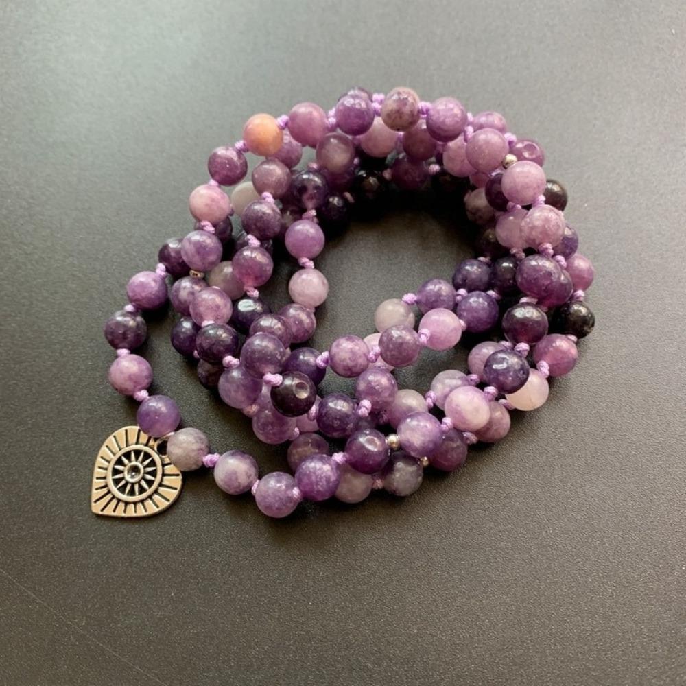 Purple Lepidolite Crystal Beaded Meditation Bracelet