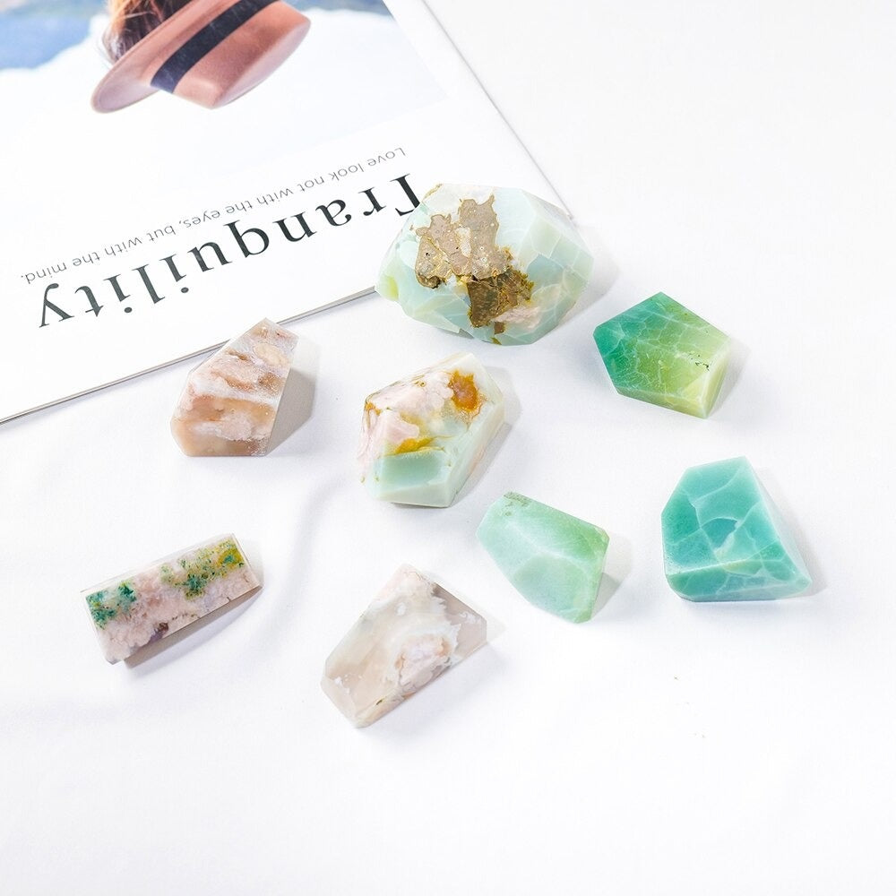 And for the creative souls, the Raw Natural Green Flower Agate Stone is said to enhance communication and creativity - perfect for artists, writers, and dreamers!