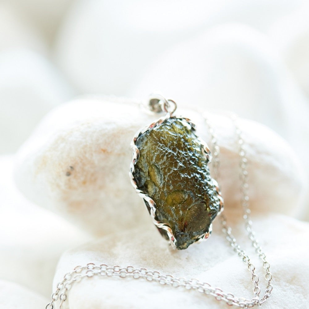 In addition, gas bubbles were trapped inside the Moldavite crystal during its formation. These bubbles give a unique visual and indicate a real Moldavite. Certified by a our Real Raw Moldavite Crystal Necklace has all the genuine moldavite stone qualities, complemented by a sterling silver 925. It's a true collector's dream!