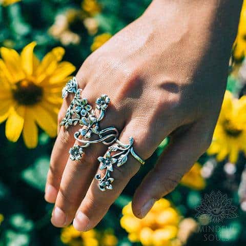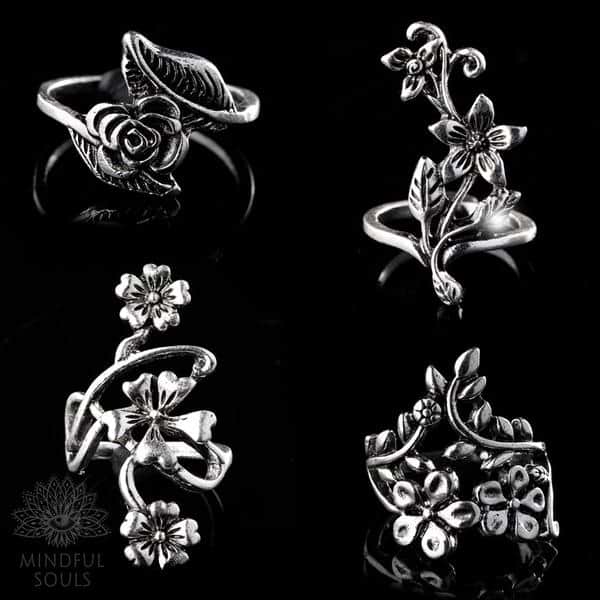 Sacred Blooming Flowers Ring Set will inspire you to vibrate with romance and enduring true love.