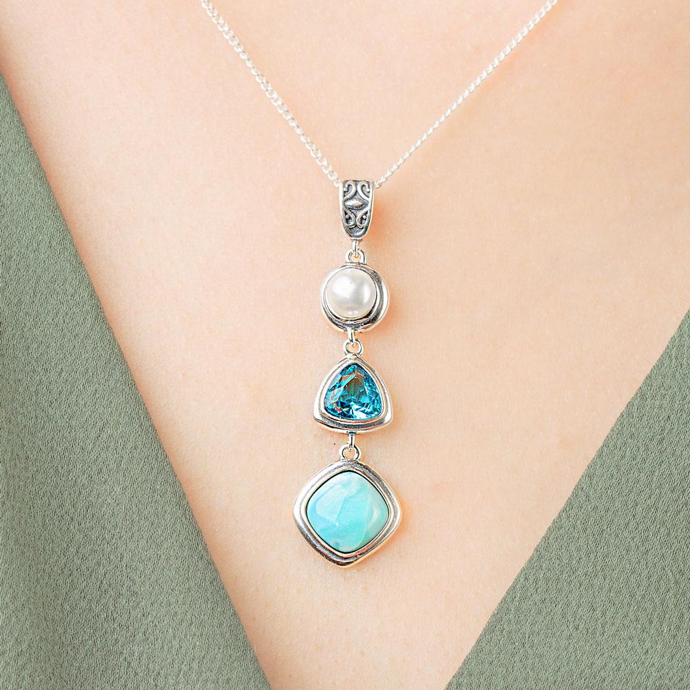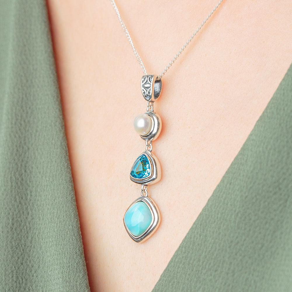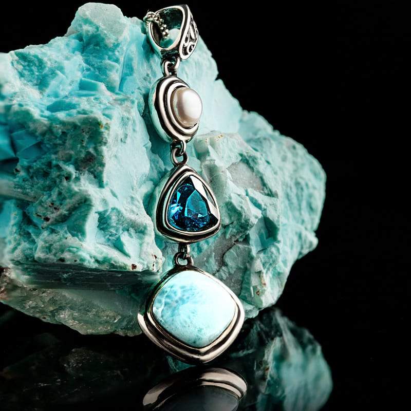 Stone: Larimar, Blue Topaz, Fresh Water Pearl