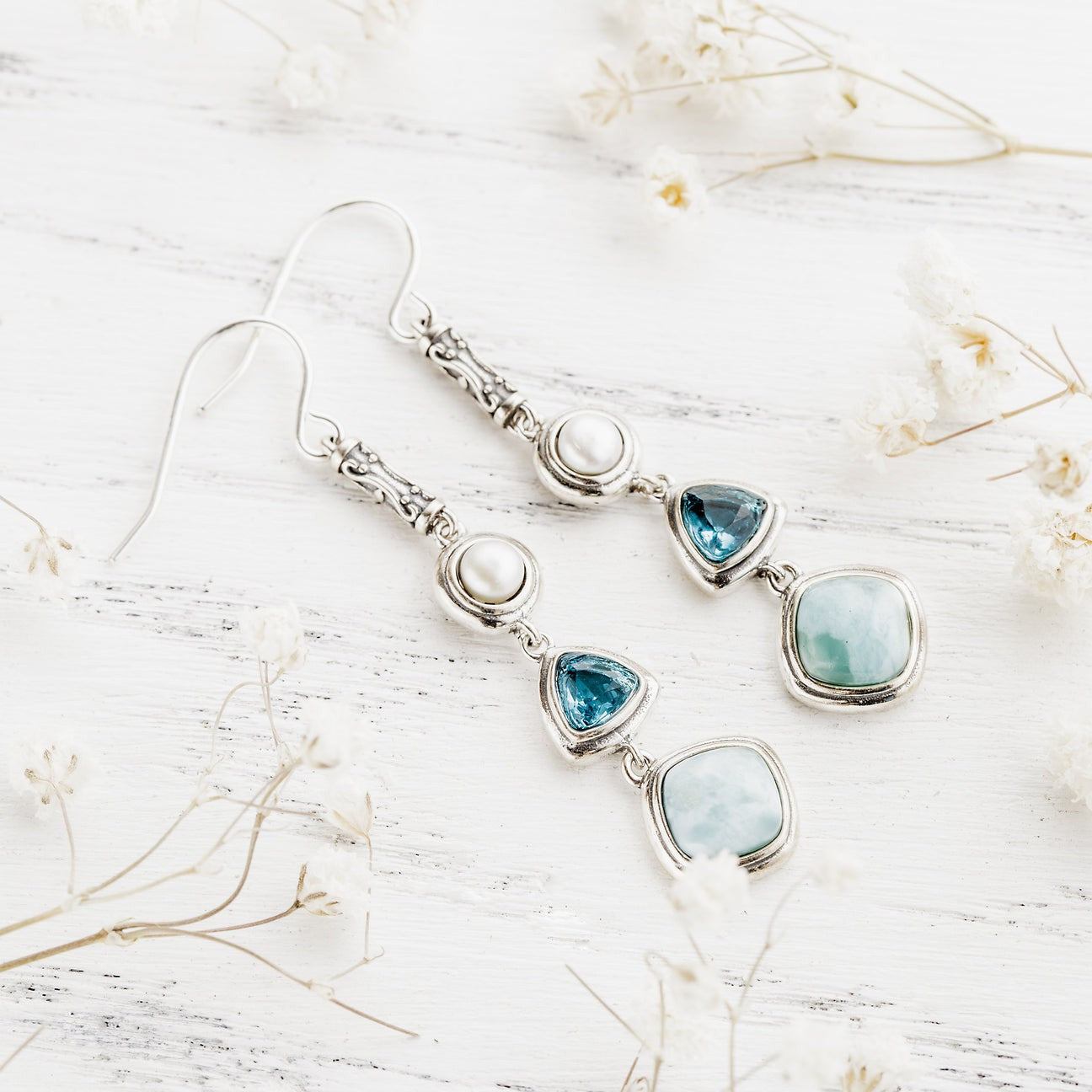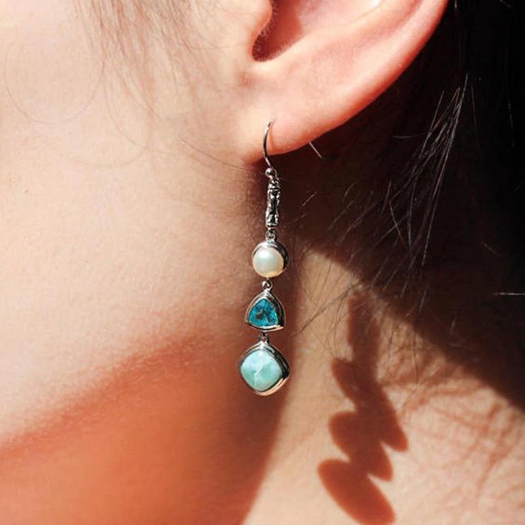 The Silver Larimar Earrings, believed to bring inner strength, can spiritually guide you through difficult times.