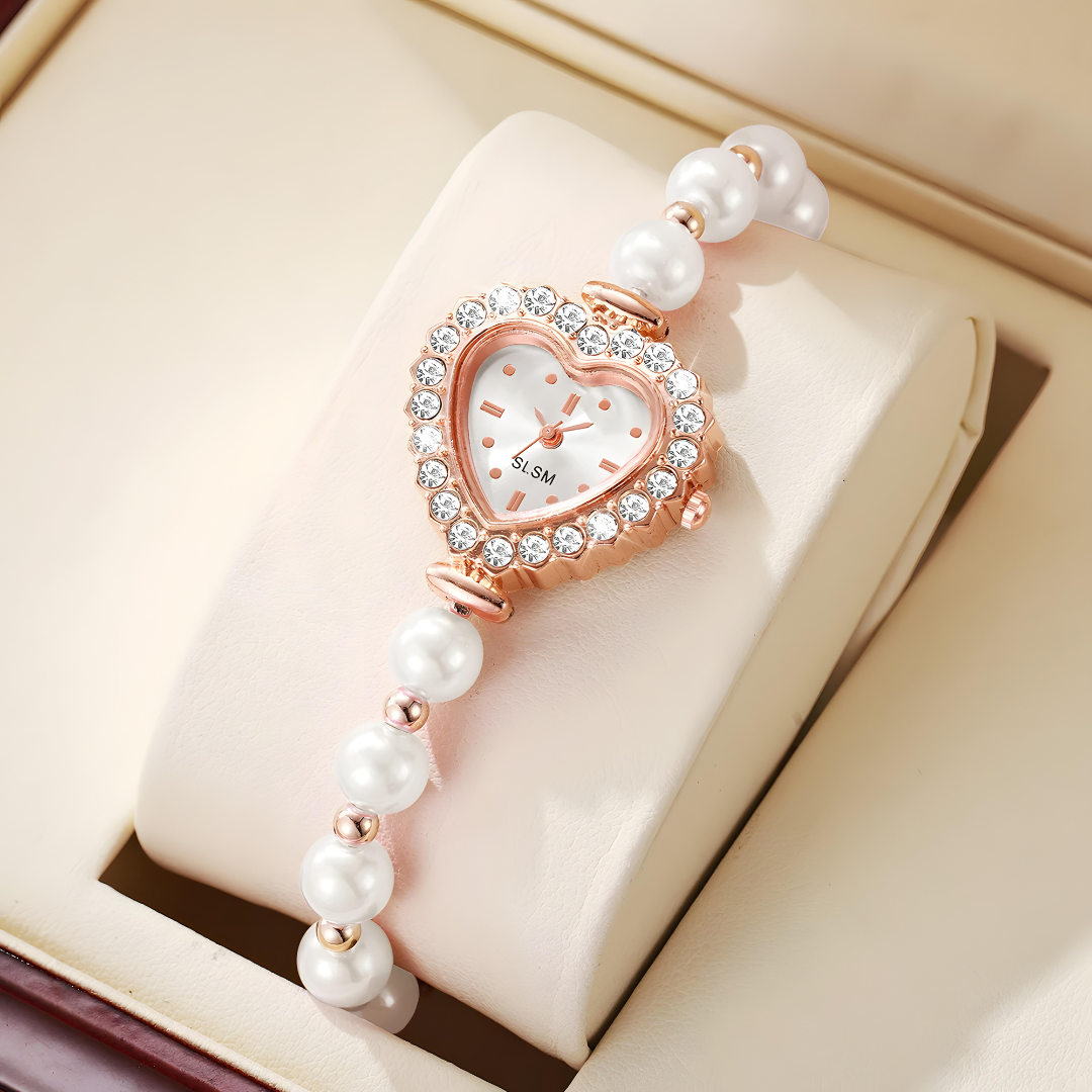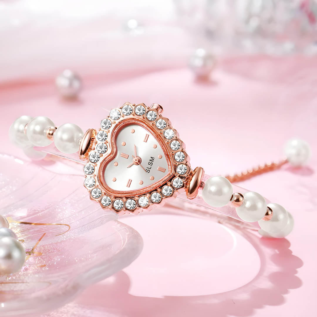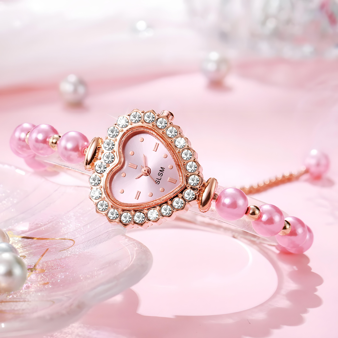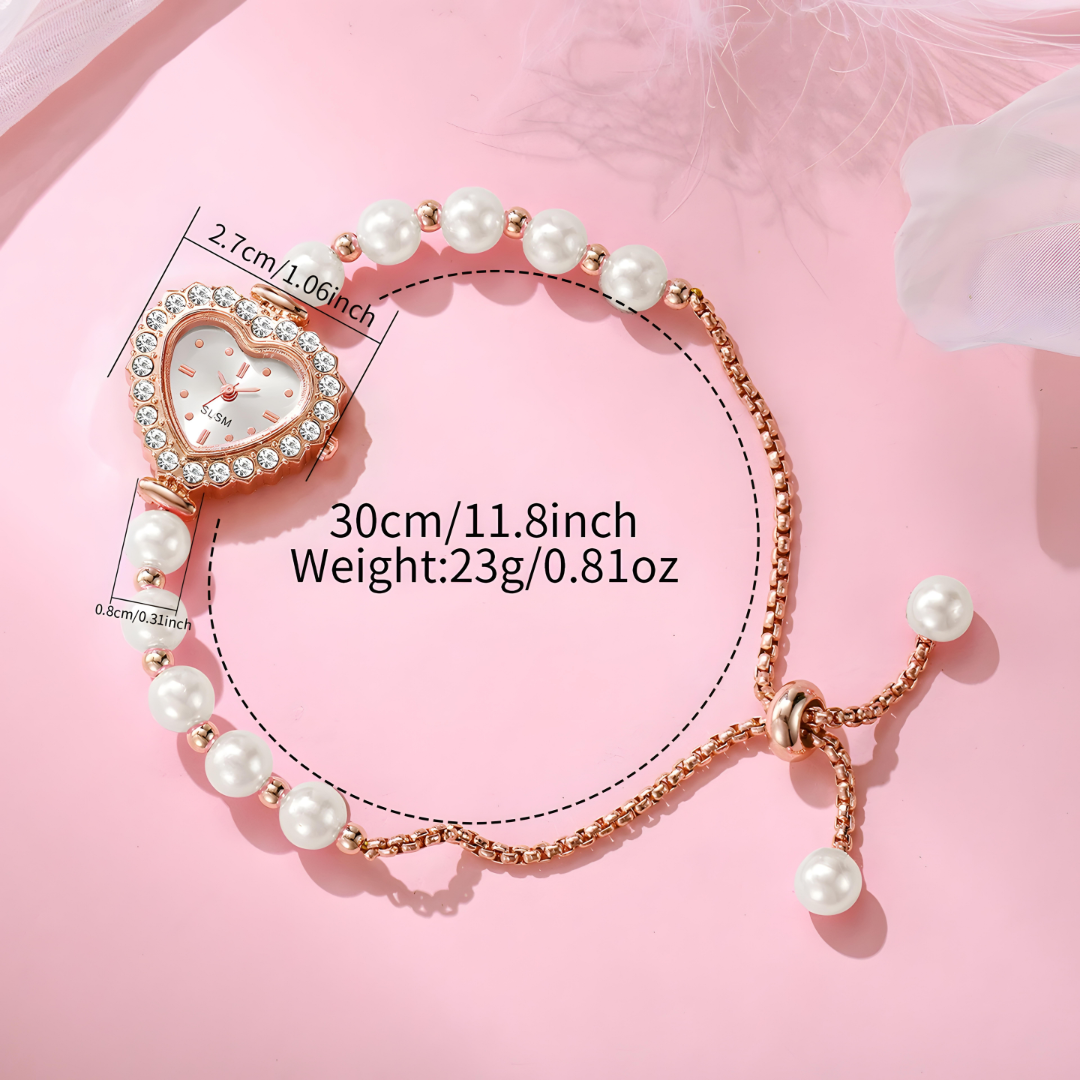 The adorable heart-shaped face makes every glance at time feel special and romantic. Sparkling crystals catch the light like tiny stars, while smooth pearl beads feel soft and elegant on your wrist. This isn't just a watch - it's a sweet reminder that love is always worth your time.