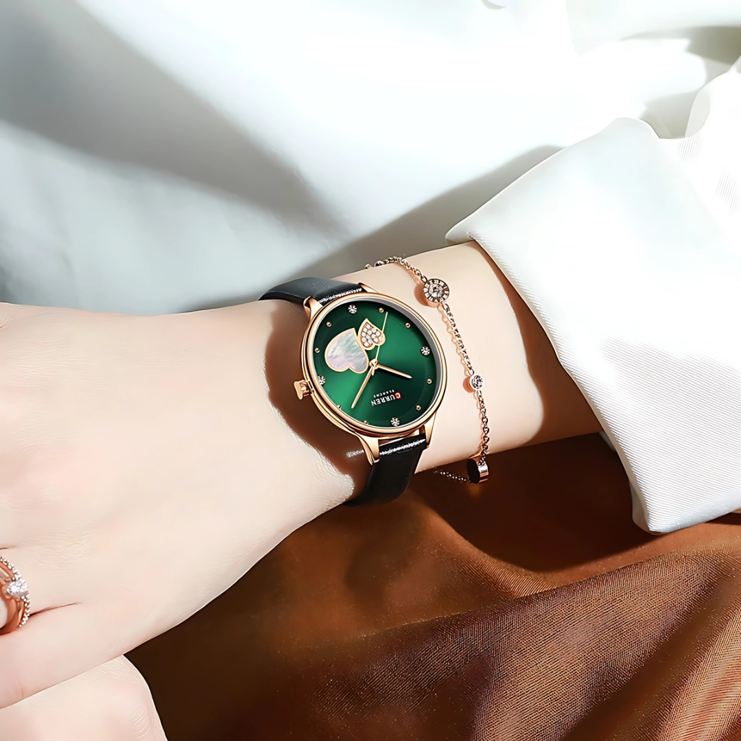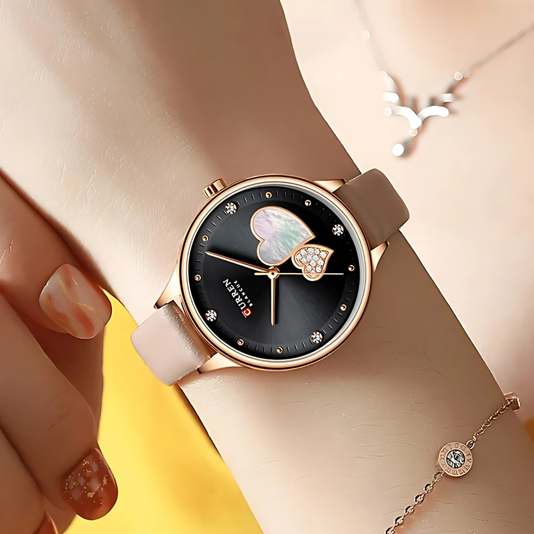 The shimmering mother-of-pearl heart catching every light, sparkling crystal details that make you smile every time you check the time, and that gorgeous rose gold glow that makes your skin look absolutely radiant.