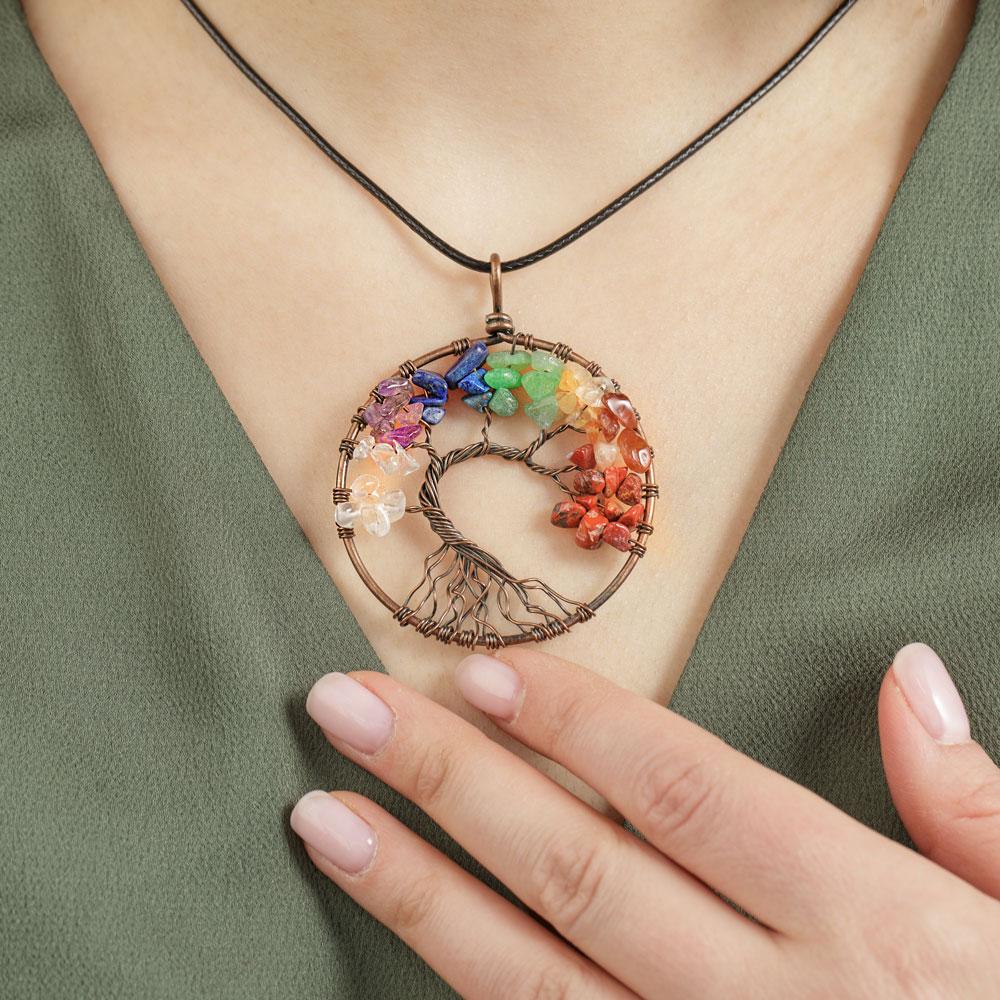 The Tree of Life crystal necklace is a universal symbol found in many spiritual and mythological traditions around the world. In various cultures, it is known as the Cosmic Tree, the World Tree, and the Holy Tree.