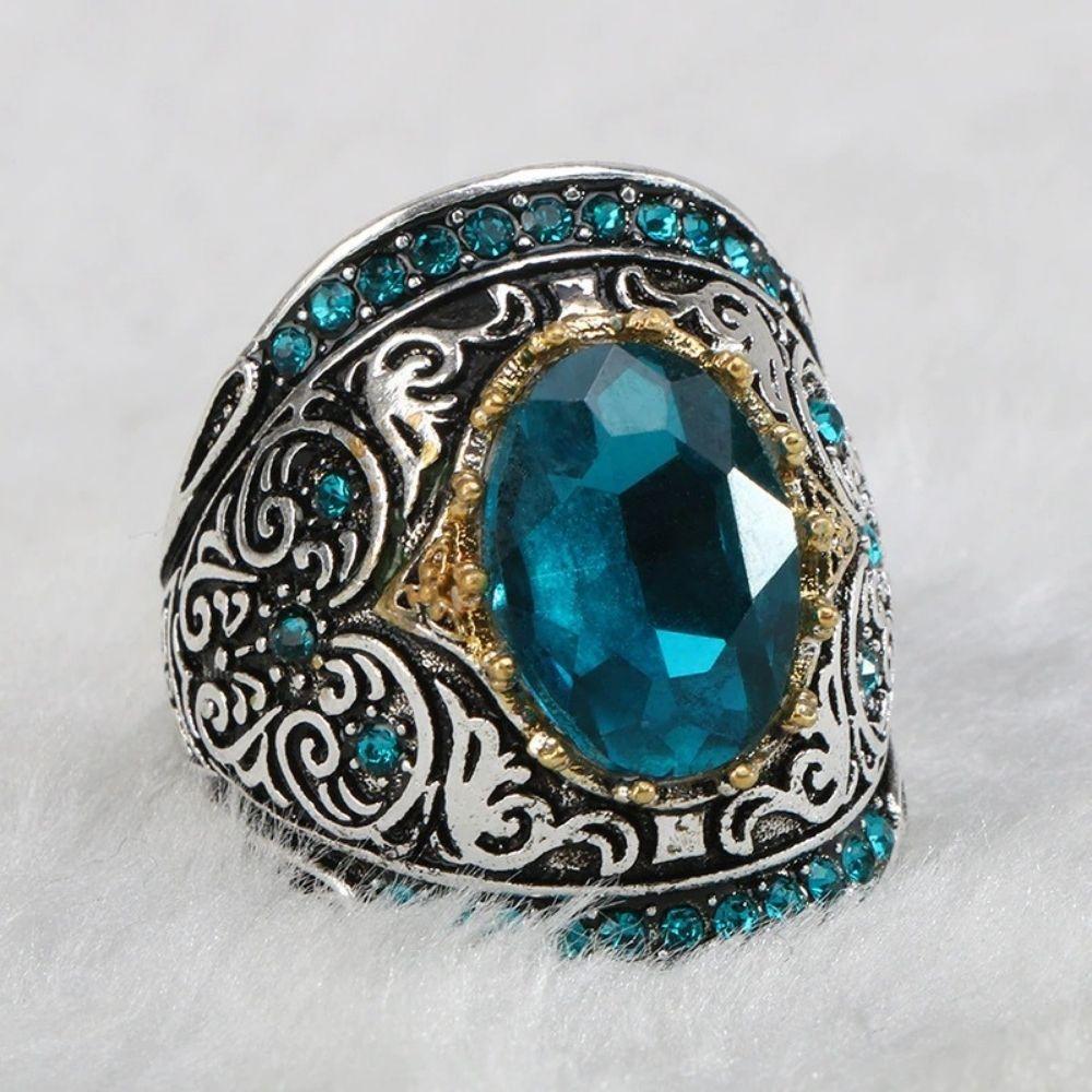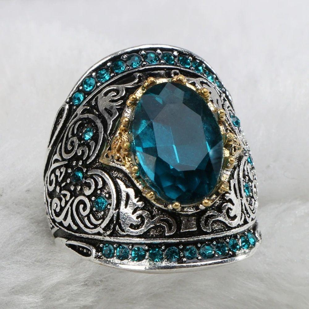 The unique design, engraving, and bright aquamarine crystal in the middle won't let anyone take their eyes off you!