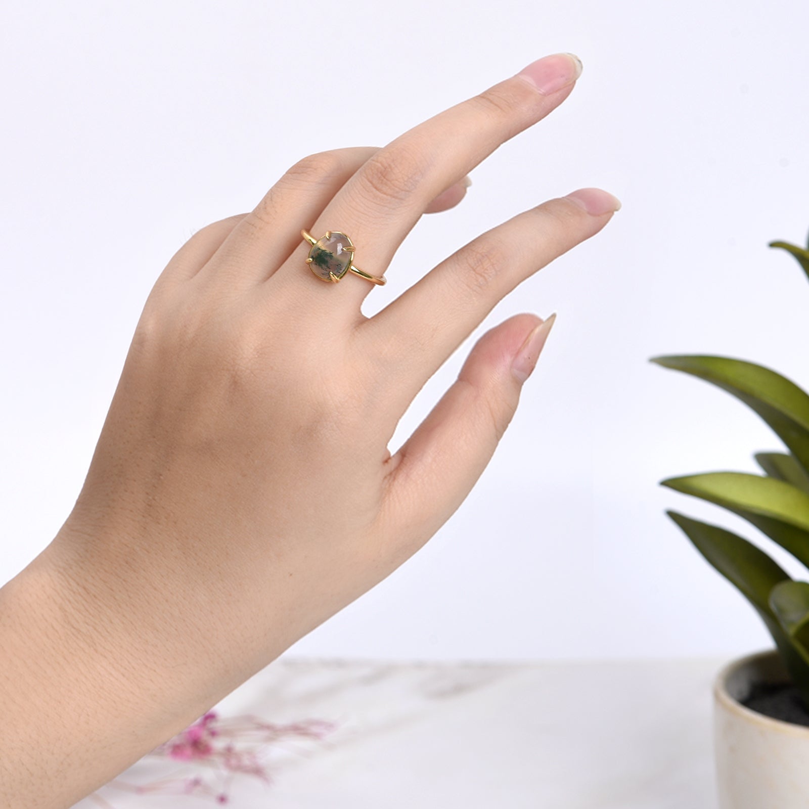 Besides being stunningly beautiful, our Vintage Green Moss Agate Ring has the .