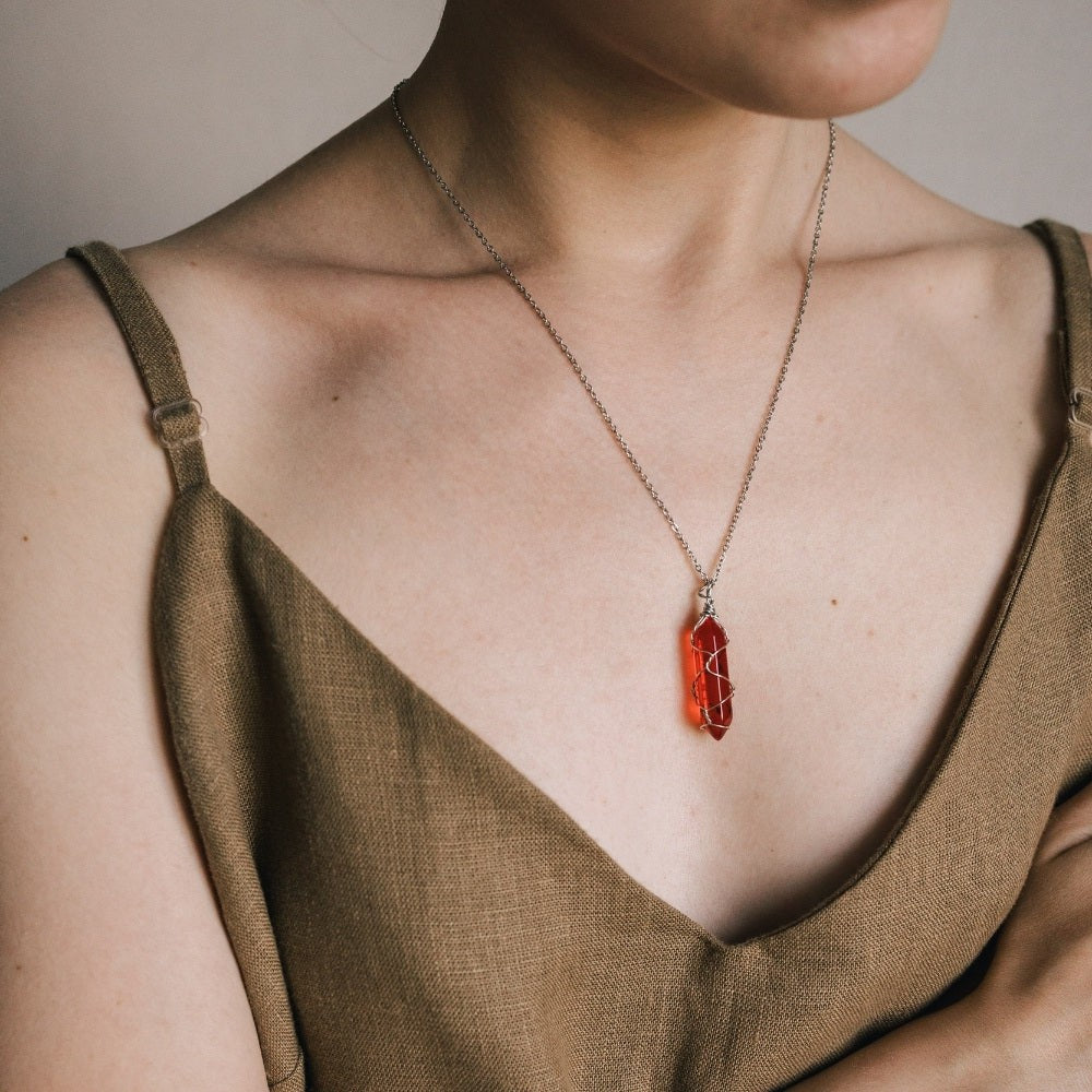 Wear our Red Carnelian Crystal Necklace and infuse those fiery red hues into your soul for more creativity, motivation, and passion.