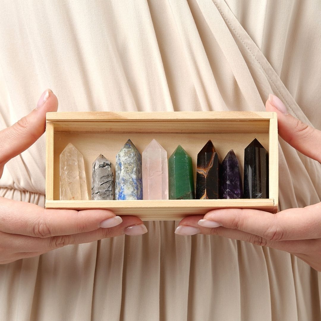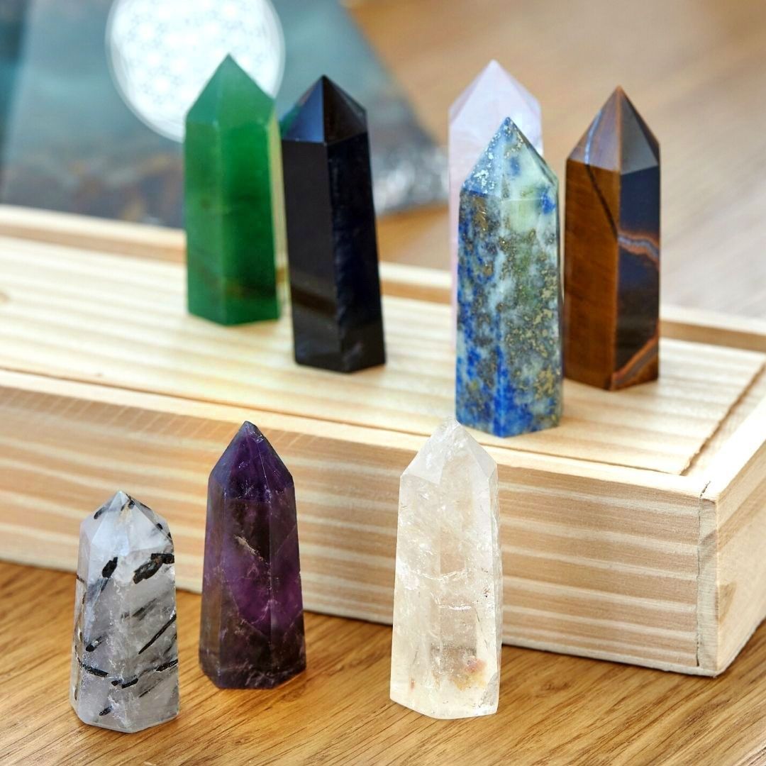 Our Magical Crystal Set includes a range of our most popular stones. These are known to help you in every area of your life: love, abundance, protection, inner peace, and more!