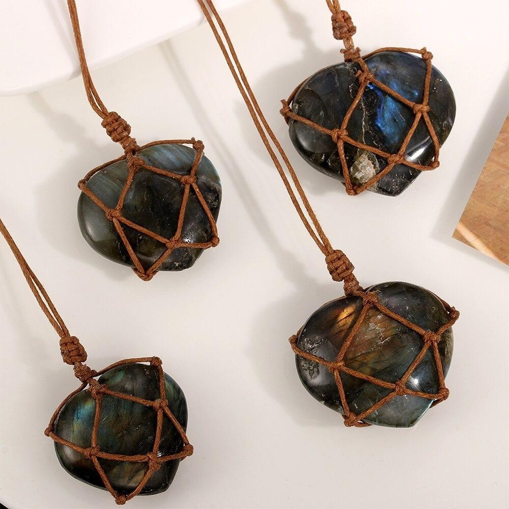 This Wrapped Crystal Labradorite Heart Necklace requires a bit of patience. At first, you may overlook some details.